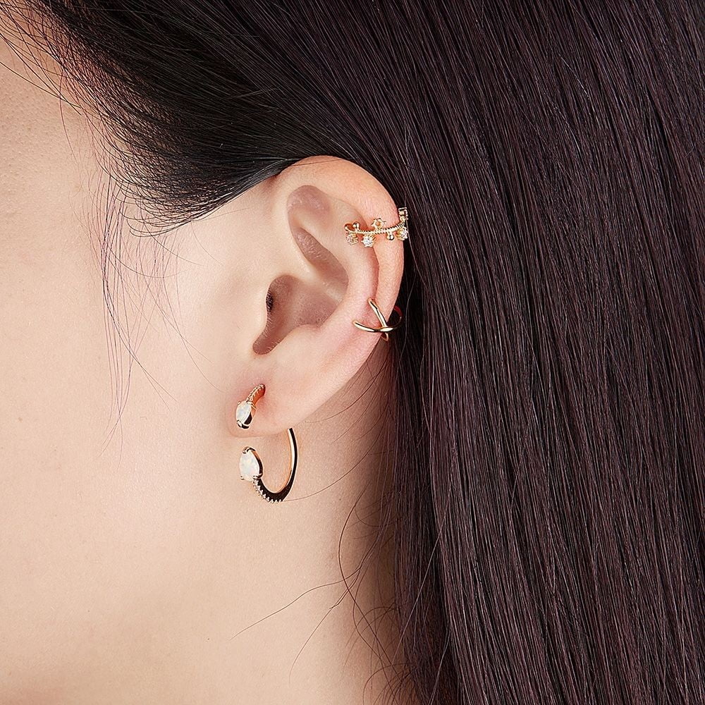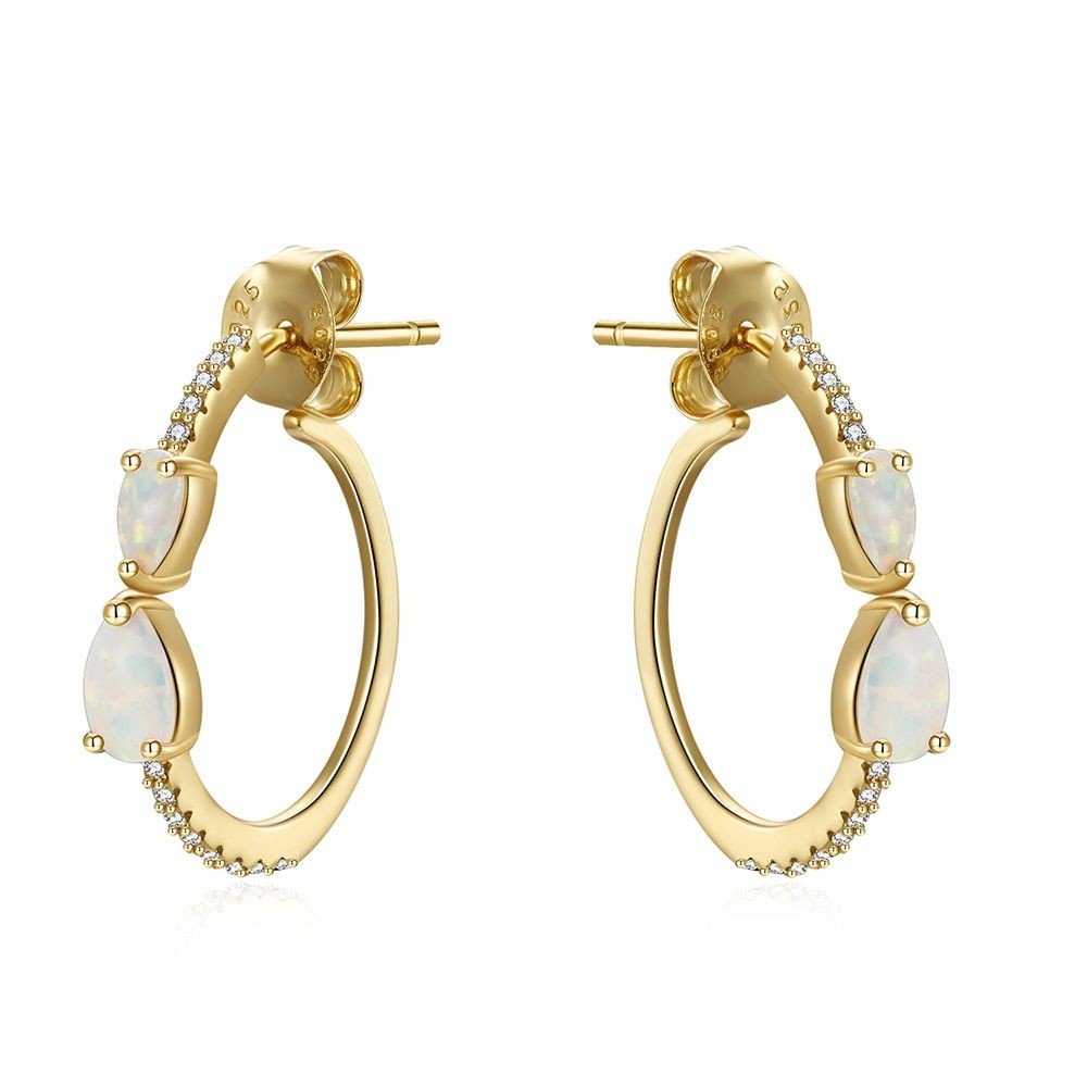 Pendiente plata chapado en oro con circonitas y piedra lunar con cierre de presión.