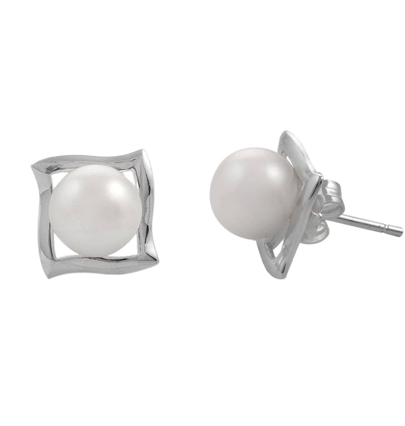 Pendientes Colección Essentials Plata de 1ª Ley Cuadrados Perla Cultivada 8- 8.5 mm. Cierre presión.