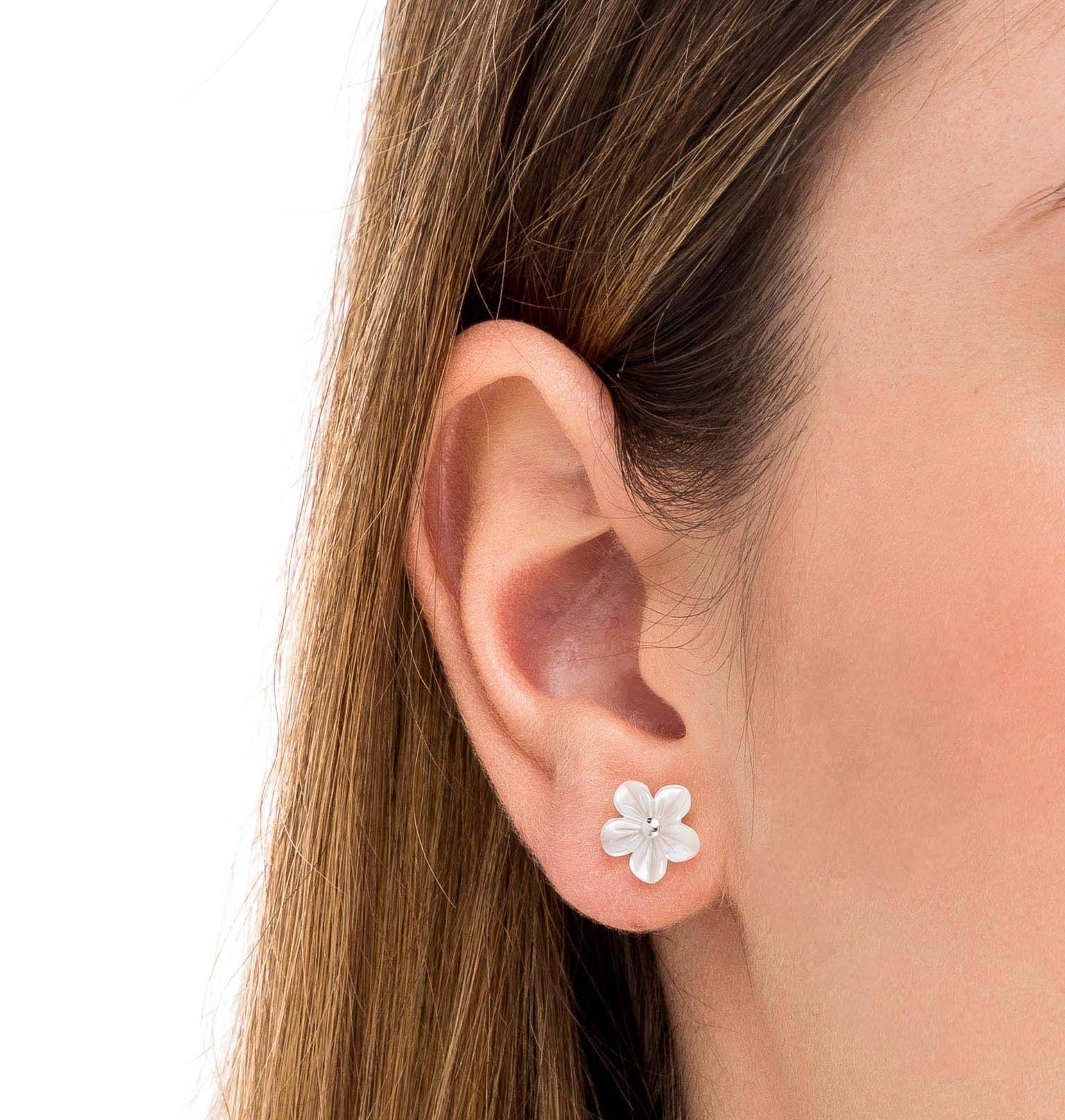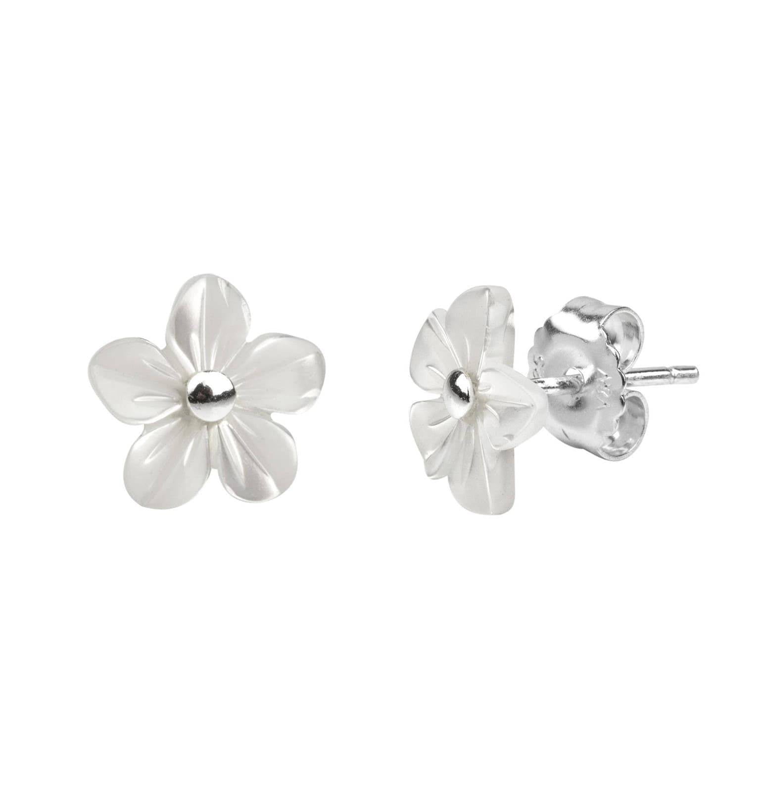 Pendientes Colección Essentials Plata 1ª Ley 925 Flor de Nácar. Cierre presión
