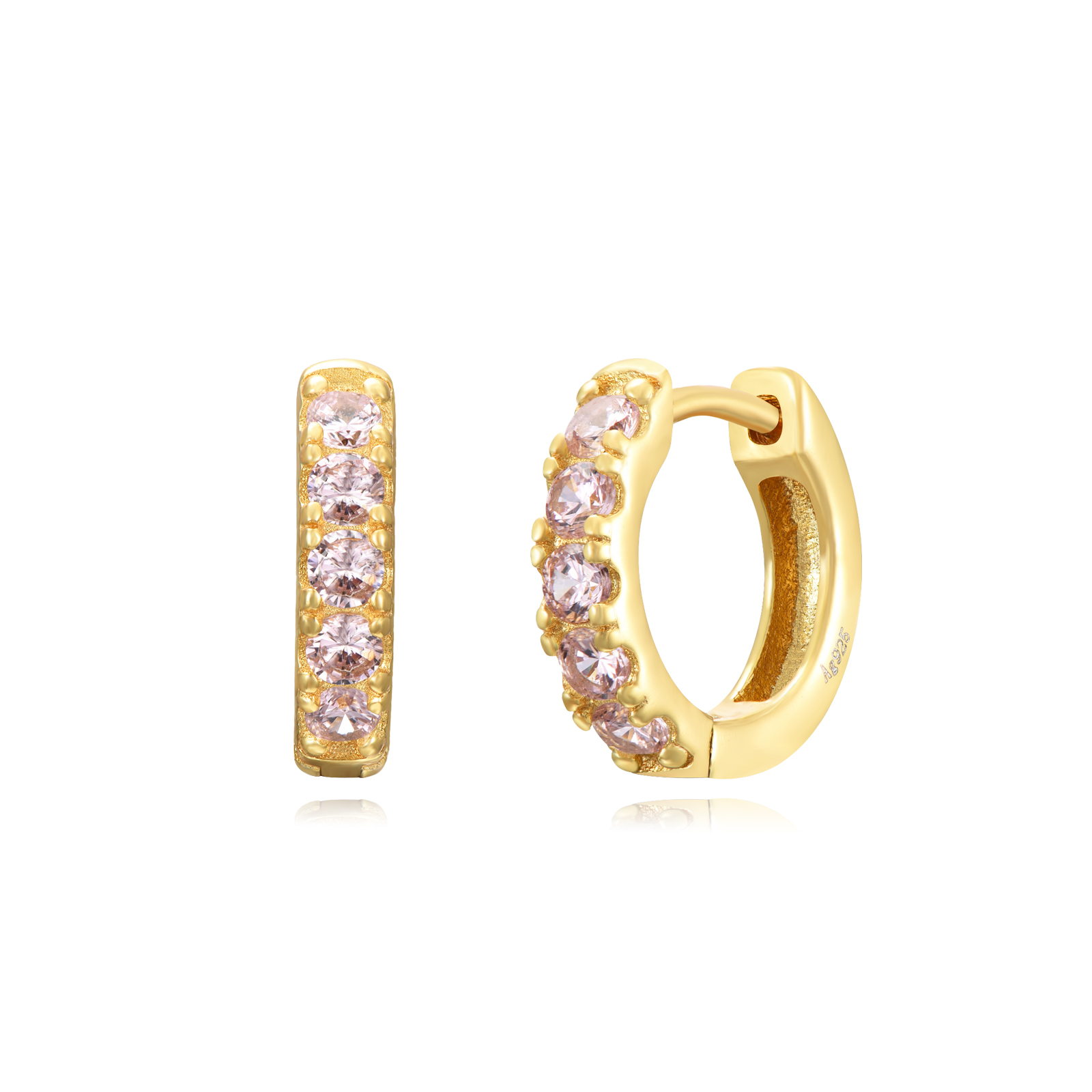 MUJER / PENDIENTES MUJER / Aros / Dorados / Pendientes Plata y Minerales Aro Circonita Rosa Bañado Oro PEZ1318DOZP