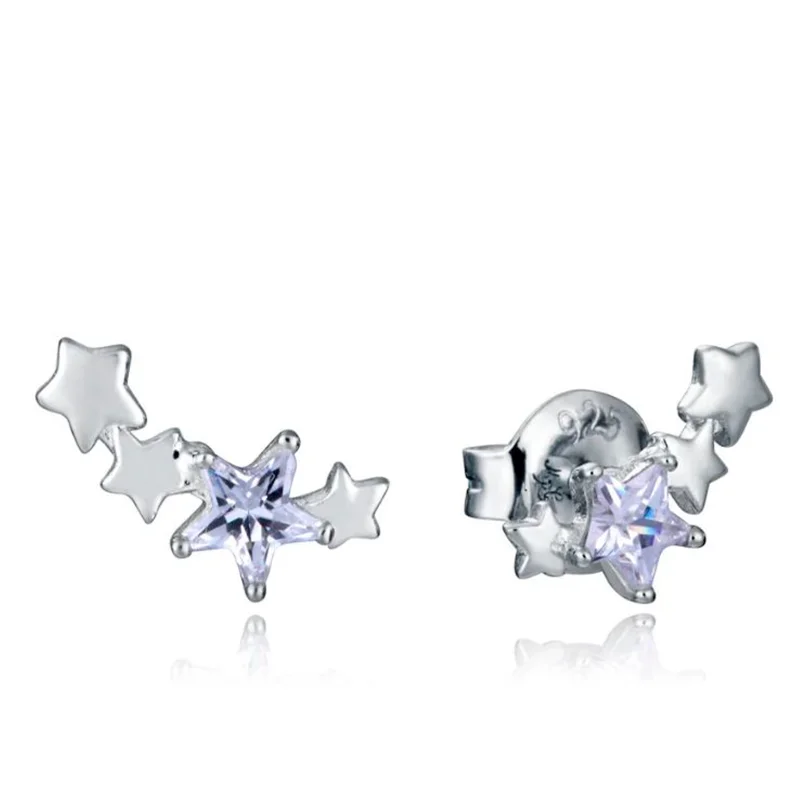 Pendientes Viceroy de plata de primera ley estrellas 13223E000-00: Pendientes de plata de primera ley con motivos de estrellas y baño de rodio estilo «climber». Una de las estrellas va decorada con una circonita blanca añadiendo brillo a la joya.