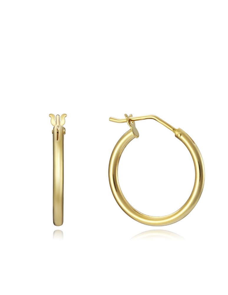 Pendientes TREND tipo aro de Plata de Ley con baño de oro de 20 mm de diámetro interior, tubo de 2 mm. y cierre africano.