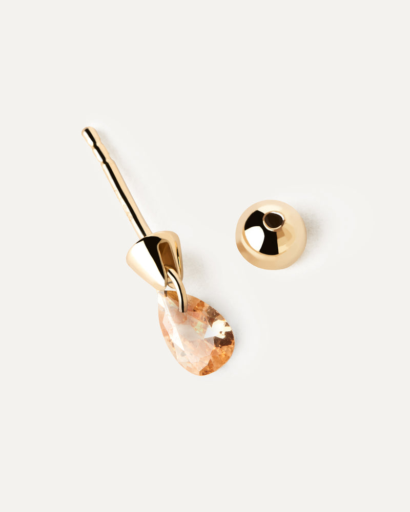 Pendiente individual con un colgante de circonita melocotón en forma de gota