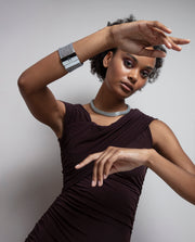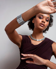 Pulsera de mujer en acero tipo cuff con diseño en forma de esterilla.