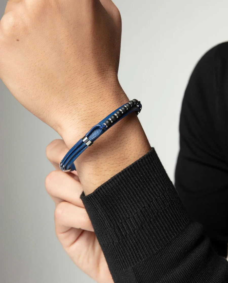 Inicio - Tienda - HOMBRE - JOYERIA HOMBRE - PULSERAS HOMBRES - Cuero y Acero - Pulsera de hombre de acero y piel azul 15169P01013
