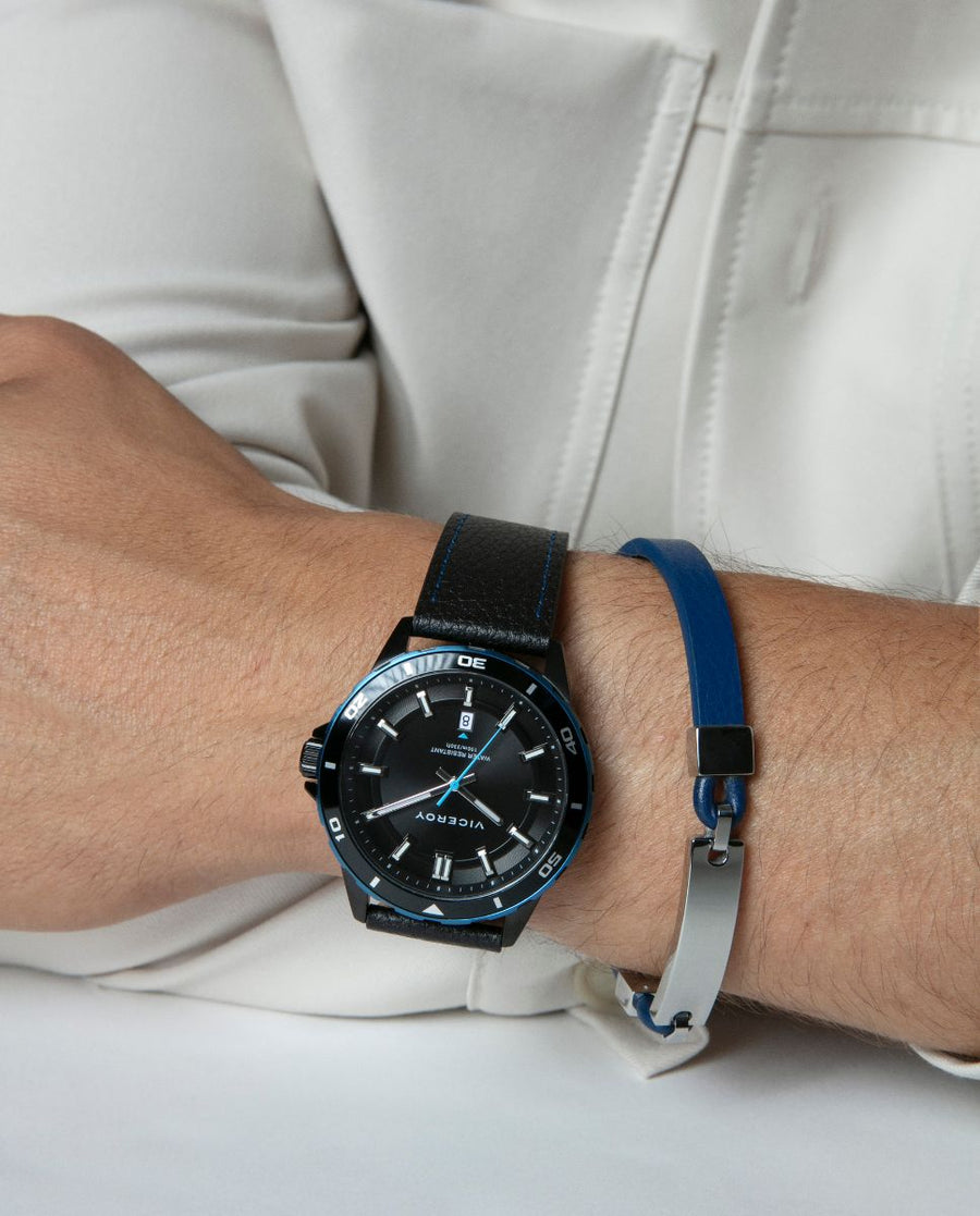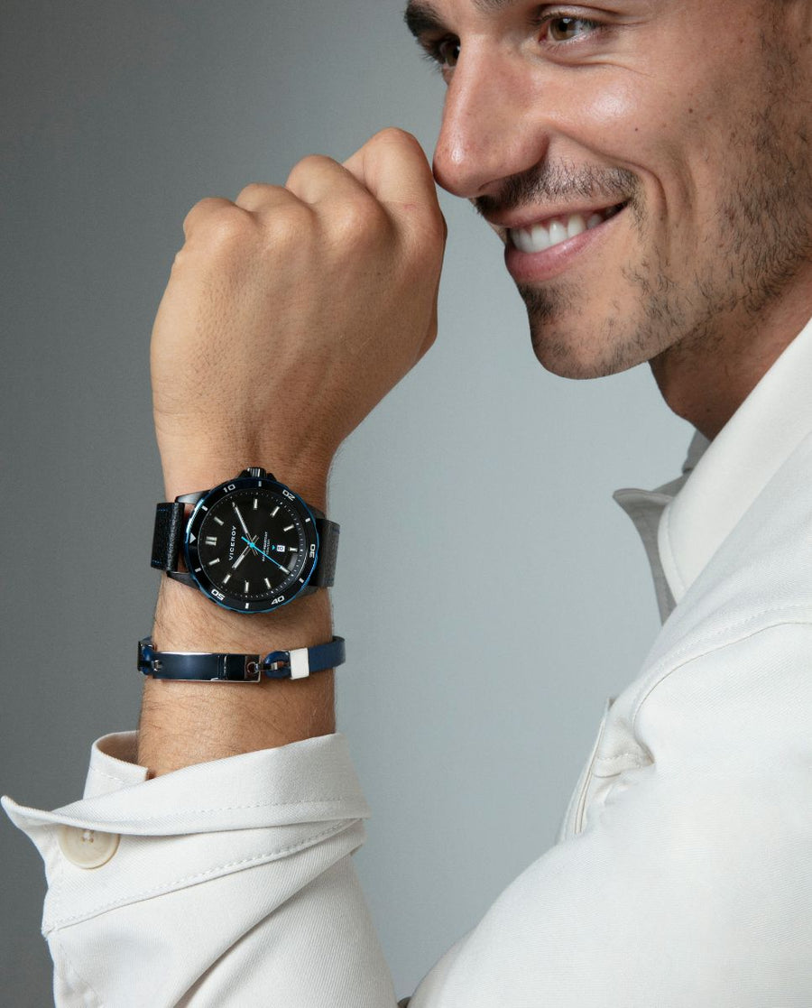 Pulsera de hombre de acero y piel azul 15170P01013