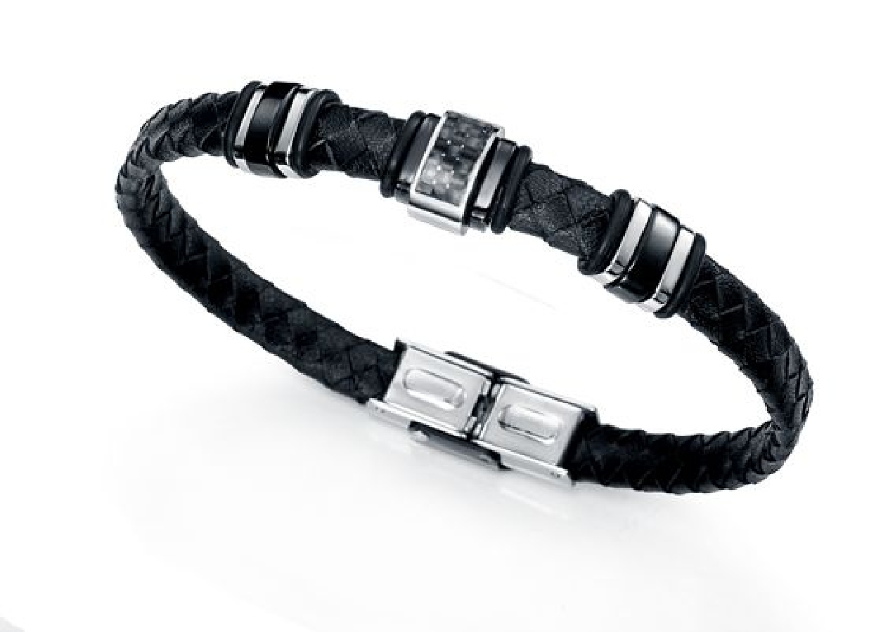 • Pulsera Viceroy Fashion de acero con fibra de carbono y piel trenzada negra