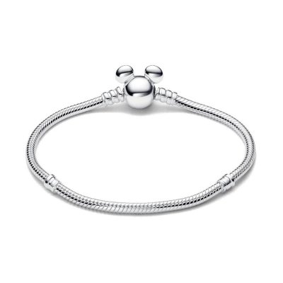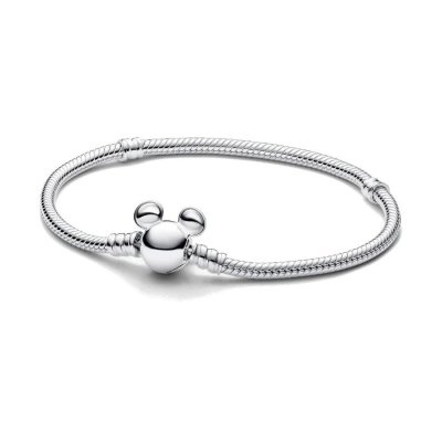 Lleva tu colección de charms de Disney x Pandora en la Pulsera de Cadena de Serpiente de Pandora Moments con Cierre de Mickey Mouse de Disney. Esta pulsera de cadena de serpiente se presenta con un cierre inspirado en la icónica silueta de la cabeza de Mickey Mouse. Ejerce presión en direcciones opuestas sobre las orejas de Mickey para abrir y cerrar fácilmente el cierre. La pulsera tiene dos roscas (separadores de charms elevados) y admite de 16 a 18 charms o charms colgantes. Este charm es perfecto para mostrar a tus personajes favoritos de Disney.