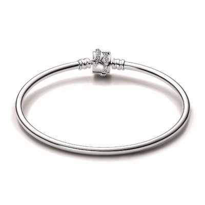 Lleva la energía celestial a tu estilo diario con la Pulsera Rígida con Cierre Brillante Estrella Fugaz de Pandora Moments. Esta pulsera rígida en plata de primera ley se presenta con un cierre de barril, con una estrella fugaz cubierta por gemas engastadas en pavé a su alrededor y preparada para que la personalices. Embellece esta pulsera rígida con una estrella fugaz con una selección de tus charms favoritos, llévala como símbolo para atraer a tu vida buena suerte, esperanza y serendipia.