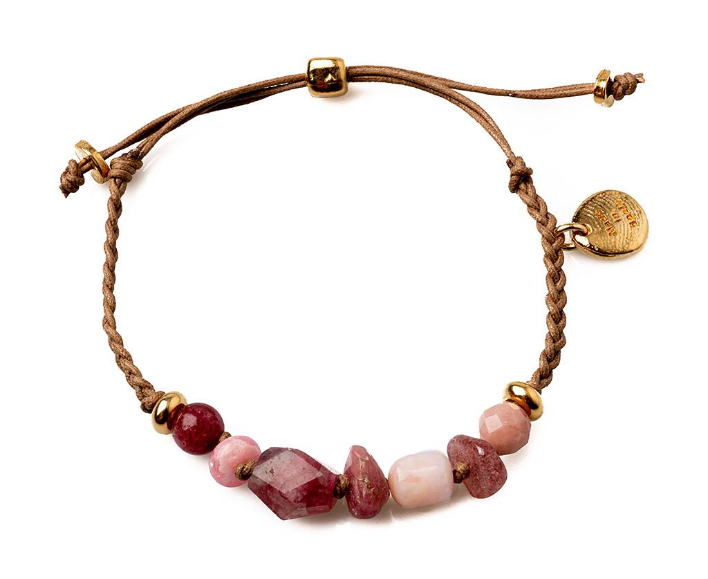 Pulsera Velatti de algodón trenzada con muscovitas rosas.