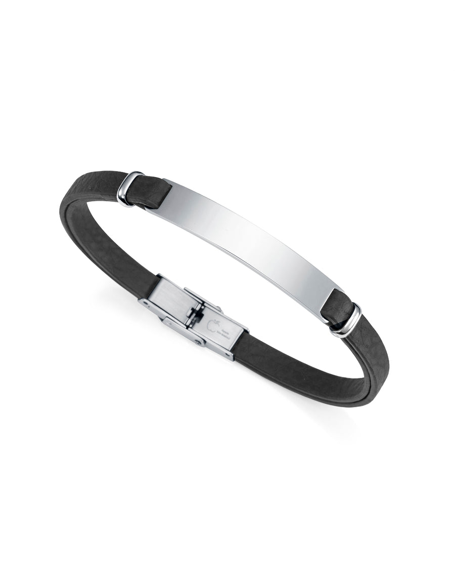 Magnífica pulsera Eco con placa de acero reciclado y correa vegana negra de 21,5 cm de largo. Una joya llamativa, elegante y personalizable. El poder del compromiso se alinea con la última tendencia en este complemento único. Siente el privilegio de llevarlo.