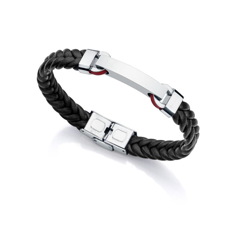 Pulsera Viceroy Fashion para hombre de la colección Beat fabricada en correa de piel trenzada color negro con una placa de acero inoxidable rectangular en su parte central ideal para realizar grabados personalizados. Su cierre es de broche.