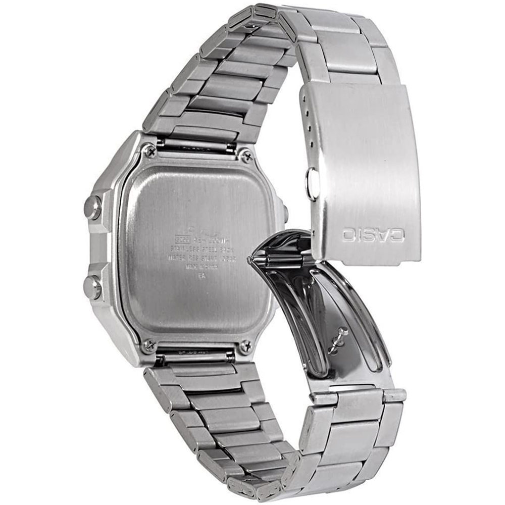 Este reloj marca Casio tiene una caja de Resina con un diámetro de 42.1 mm y cuenta con una correa de metal. Dentro de la caja se encuentra un mecanismo de Casio de alta calidad el cual esta protegido por un cristal Mineral.