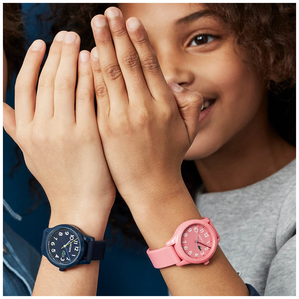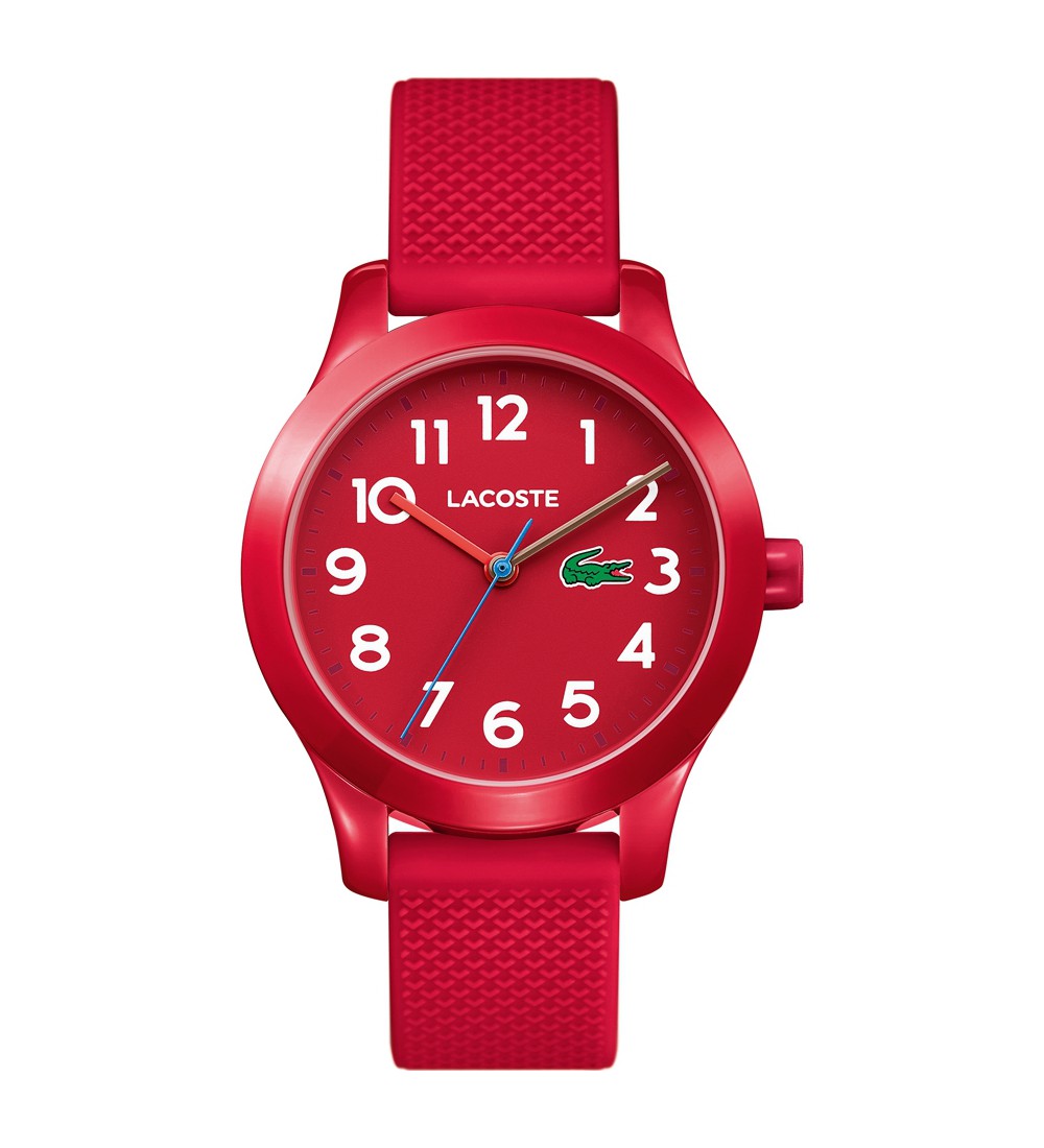 Reloj Lacoste para niño en color Rojo. Su caja es de plástico con 32 mm de diámetro con agujas en rojo como su esfera, con mecanismo de cuarzo protegido por cristal mineral. Su correa es de goma roja con cierre de hebilla. Resistente al agua hasta 5 ATM. Ideal como regalo de comunión.