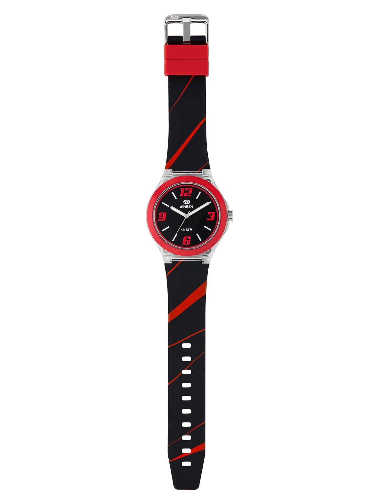 Reloj Marea Hombre B35354/4 Sport Rojo. Caja de plástico transparente de 44mm. Correa de silicona azul. Bisel rojo. Esfera azul y agujas blancas. Quartz. Sumergible 100m. 3 años de garantía. Ref. B35354/4
