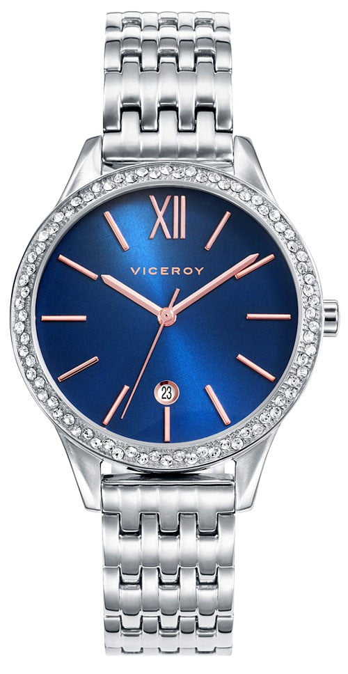 Reloj Viceroy 471102-33 colección Chic para mujer, diseño muy elegante y actual. Este modelo para mujer en caja y brazalete de acero, bisel fino y elegante en acero con piedras, esfera en azul con agujas e índices en chapado oro rosa Recibirás tu reloj Viceroy en su estuche original acompañado de la Garantía oficial que ofrece el fabricante con 2 años de validez.