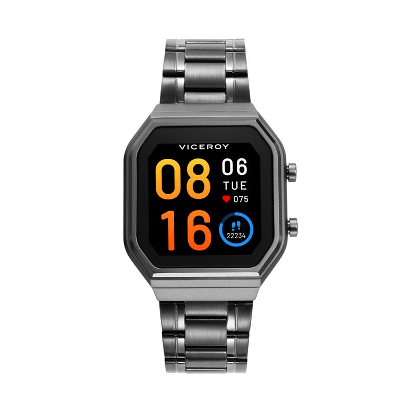 SmartWatch Viceroy para hombre y mujer de la colección SmartPro fabricado en aluminio color gris. Estamos ante un reloj de diseño elegante con las últimas funcionalidades de un reloj de última generación compuesto por caja de aluminio de 38 x 46,8mm con cristal mineral y con correa la forman eslabones en color gris. Su cierre es desplegable mediante pulsadores.
