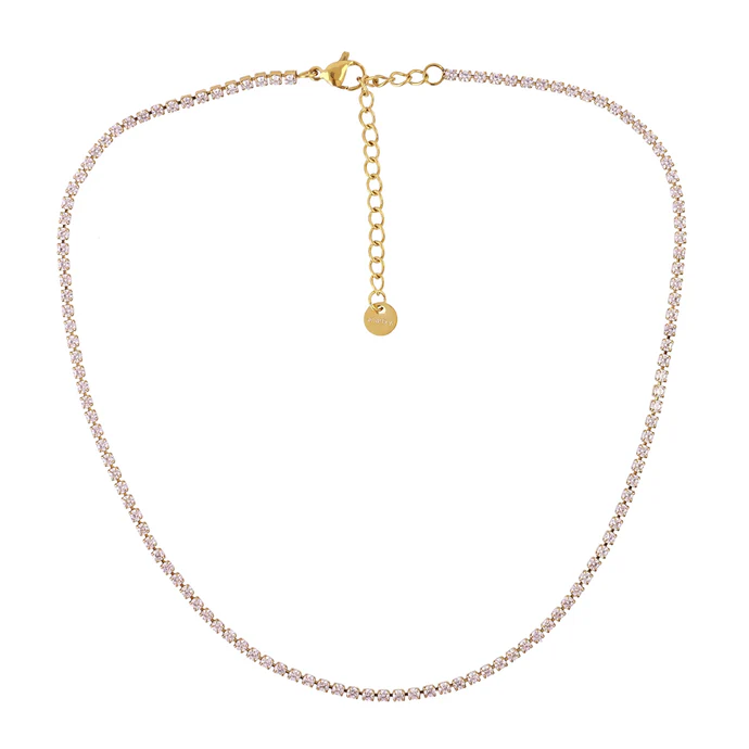 El collar Sparkle Ray es la joyería perfecta para añadir brillo a tu look diario. Su cadena de acero bañado en oro con diseño de riviere y brillante circonia cúbica garantiza un aspecto elegante y atemporal, ideal para cualquier ocasión, de día o de noche. Ligero, cómodo e hipoalergénico, te permite llevarlo mojado sin preocuparte. Además, su cierre seguro y la cadena ajustable aseguran que siempre te quede con estilo y diversión. ¡Déjate llevar por su brillo y atractivo femenino!